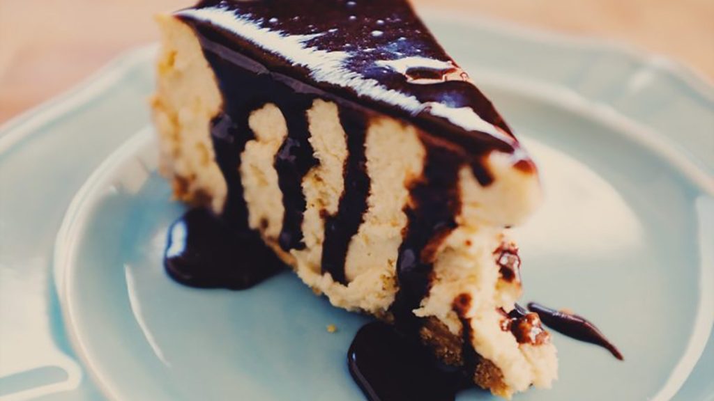 - Pour chocolate ganache over cheese cake and then place in fridge to chill for 1 hour.